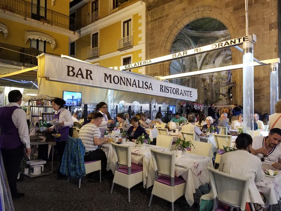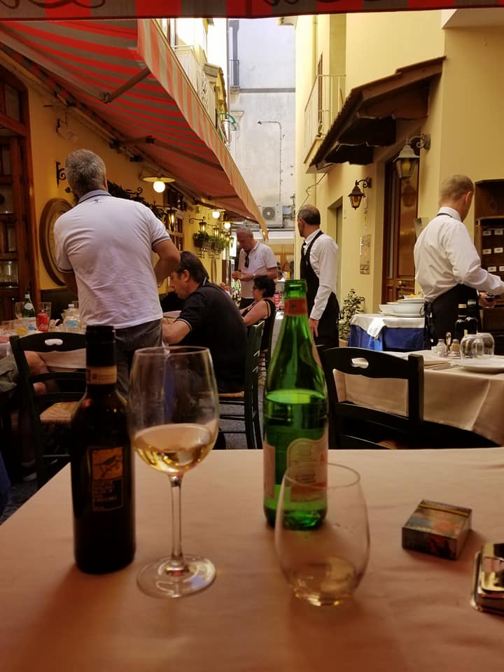 The air was starting to cool, the sun dimming in the horizon , it’s almost 8:30 pm and I am ready for eventually food. I walked around a bit and noticed that everyone had the exact same idea as I did. I settle on Bar Monalisa Ristorante with its million tables and chairs and sucked it up to being a tourist . I had a gorgeous meal of appetizers and a “small” bottle of Falanghina , an ancient grape and a fabulous white wine. Toasted I think it is time to call it quits for the day. It’s been a long one of travels from Rome, too much wine and actually I think my body is really looking forward to a slower pace and some rest after so much touring for the past 3 weeks.