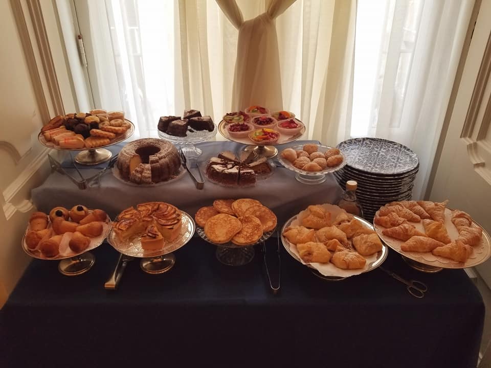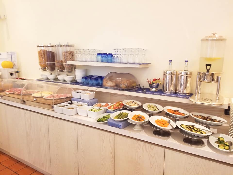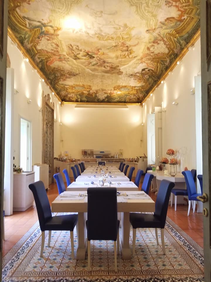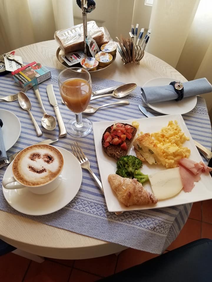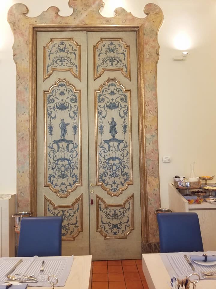 Ahhhh what a fabulous rest I had. The streets and town seem sooo quiet . No wonder it’s only 7 am. I get myself together to go downstairs to enjoy breakfast provided by the hotel. Wow!!!! breakfast is in a fabulous formal looking dining room with beautiful frescos on the walls and a gorgeous mural on the ceiling that reminded me of Michelangelo’s painting of the Sistine Chapel , it was such a welcoming and beautiful n environment. . There is a large dining table for at least 25 people, and many small little tables for couples and small families as well as little tables lining the corridors for some outside seating . The food spread if phenomenal. Up until this point I have been dining at little bars, cafe’s or at home from a day of local produce shopping. So this is my first continental style breakfast in ages and I welcome it. Breads and pastries , jams of all sorts, charcuterie set ups, champagne Prosecco and coffee. I mean who could ask for anything more…..?