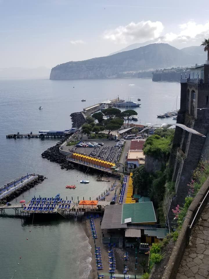 Having just landed into Naples off of the little over an hour ,fast ITALO train from my 1 week journey in Rome… The Eternal City, I hired a private transfer to Sorrento. By this time I had done some serious damage shopping throughout Italy and had brought out my second, shopaholic bag that is now filled to the brim. I could not see myself lugging things around anymore so the private transfer was just what I was looking for. I used : Transferelax http://www.transferelax.com info@transferelax.com ph. +393349118655 And they were absolutely perfect. I felt a little silly riding in that large Mercedes passenger van all by myself . My driver knew how to whip and turn past all the death defying curves on the beautiful yet pearl clutching winding drive to Sorrento. To see the ocean and the gorgeous little valleys and bays along the way was just awe inspiring . It felt right and it felt so welcoming.