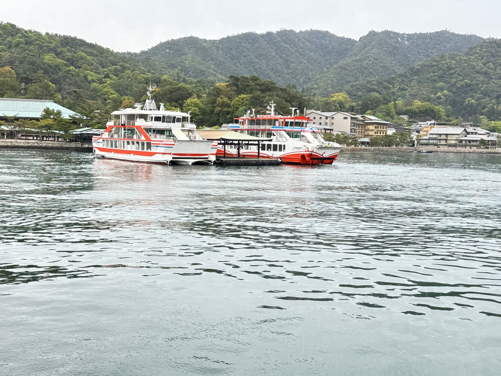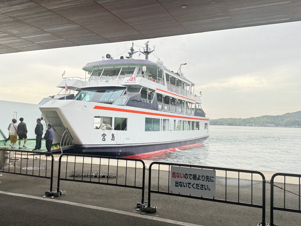 It was supposed to rain today. So I dipped into a Lawson and purchased one of those clear long umbrellas ☂️. I landed at Miyajimaguchi and made my way to the pier. About a 5 minute walk tops.