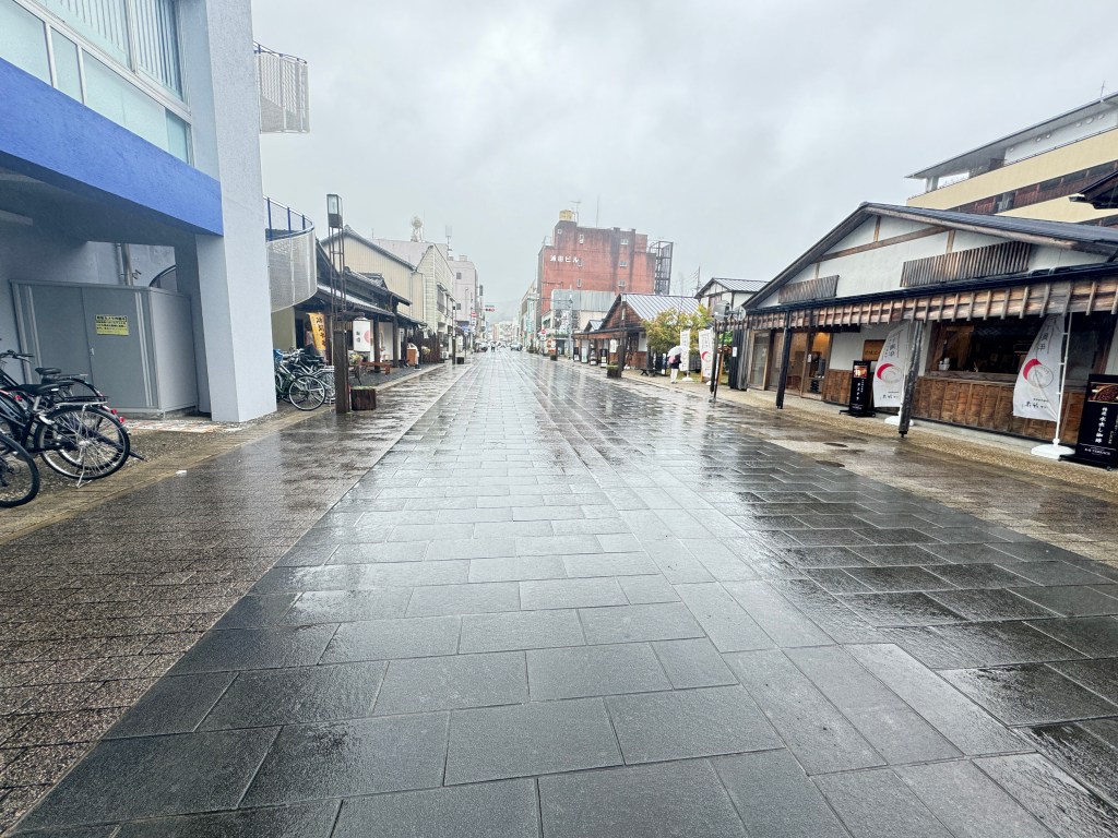 Exiting the train station I just followed the exit and it had me at street side, but on the opposite side of the entrance to the train station so I was pretty confused as to what I was doing, and I walked in the rain holding my umbrella and my luggage and getting pummeled by water