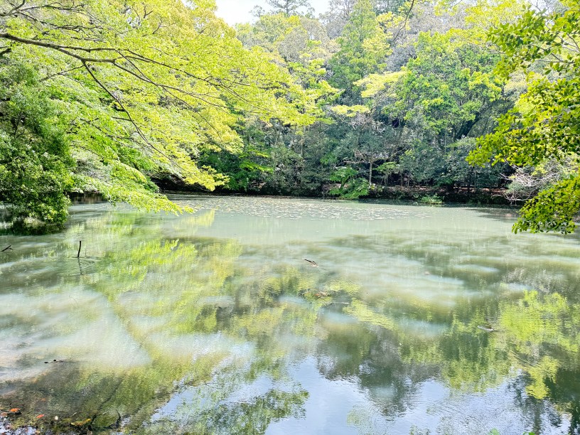 When you walk down this beautiful path, you cannot help but be in awe. Today, the sun is out. The clouds are drifting by. The greenery surrounds you. It is absolutely spectacular today. This makes sense because this shrine is dedicated to the sun goddess. She definitely came out and shone powerfully today.