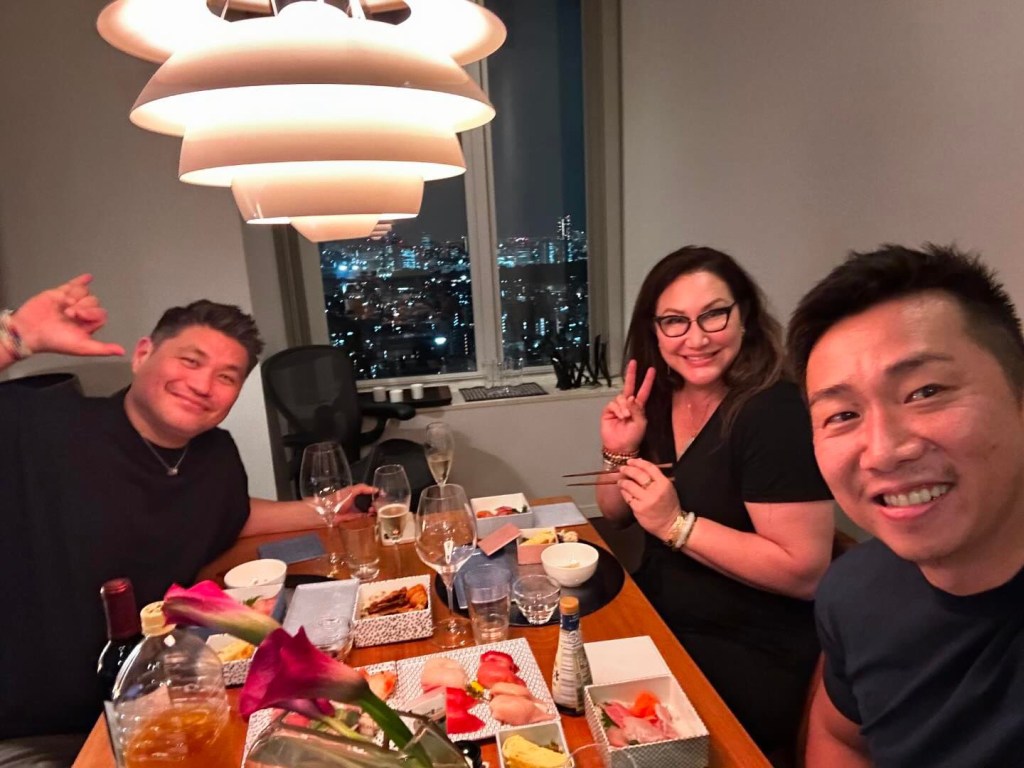 My friends live in a bougie area. Their penthouse condo inspires dreams of living the good life in Tokyo. They prepared an amazing feast of miso soup, osushi, and different types of tempura. It was absolutely divine and we washed it all down with lots of wine.