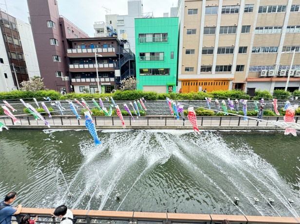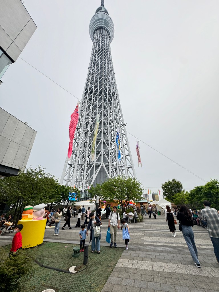 I walked around this area for a bit. It was very cute. There are a little café by the canals and people playing pickle ball. Then I walked past and through the Tokyo sky tree area. The canals adjacent to Tokyo Sky Tree had all the boys day carp flying in the wind. I think it’s called children’s Day now but all the different boys day koi flying in beautiful rows of color.