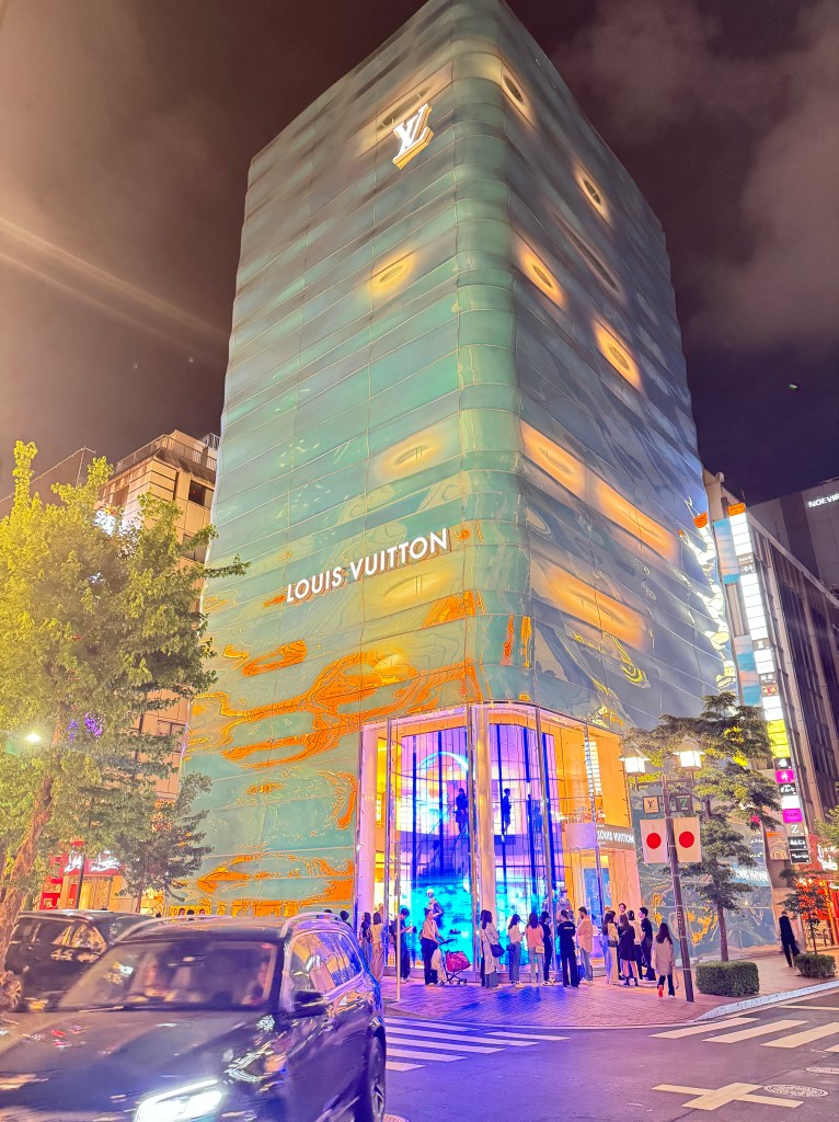 Ginza is less than an eight minute walk away. I haven’t seen Ginza since 2000. I visited with my friend Veronica. We were staying with our friend in Tochigi-ken so she could see what Ginza looks like. So flashy yet so elegant. Filled with all the Designer stores one could dream of. Some of these stores are pieces of art themselves. The Hermes store front is one such example. And OMG the last remaining Barney’s Ny I almost cried. How I miss Barney’s
