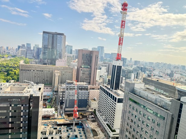 I’m staying at the Hibiya BLOSSOM hotel. I actually arrived perfectly timed for check-in. The lobby is located on the 18th floor. And once the elevators opened up, you have a commanding view of Tokyo tower. The surrounding area comes into view as well, and it is an absolutely stunning sight. The lobby is so pretty and airy, and everyone who works there is so pleasant. There are lots of international guests at this hotel and I’m not sure if I even saw one Japanese person that’s a first for me