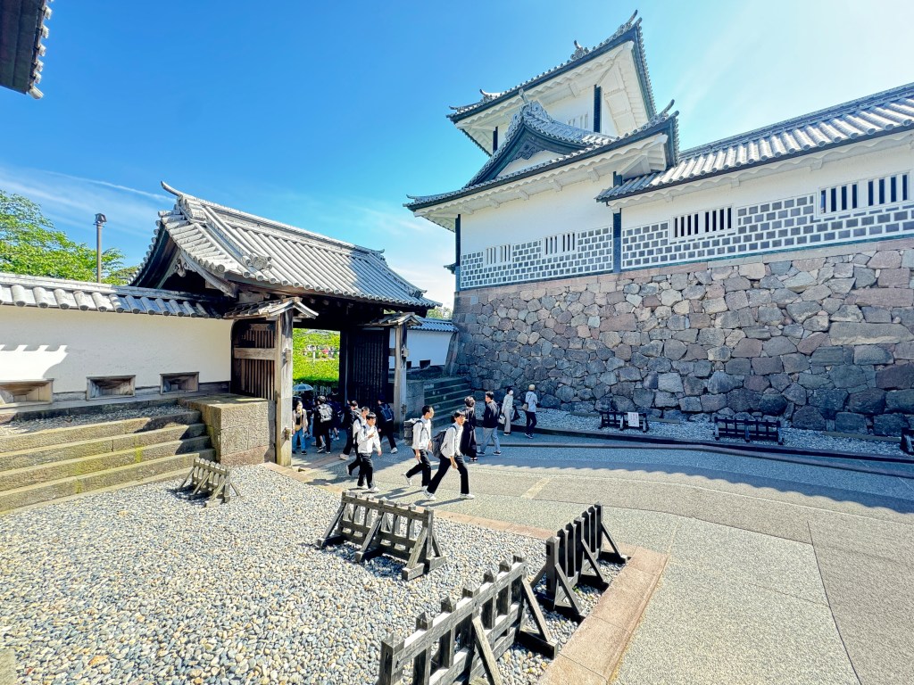 The entrance to the castle grounds are just stunning. The day was so beautiful. The sun was shining brightly. Everything looked very green. There was a chill in the air. This prevented overheating as you climbed up to the castle grounds and through to the park. Kanazawa Castle Park is a beautiful retreat and a great place for families. From up top the castle walls you get a commanding view of the city.