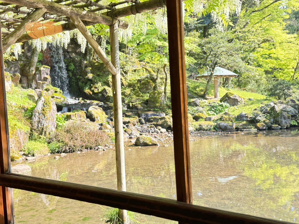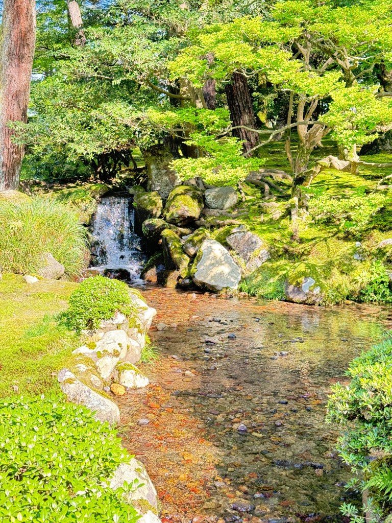 I stopped at Yugao-tei tea house. I had some lovely matcha and mochi while staring at the most beautiful pond. I listened to the sounds of gushing water from the Midori Waterfall next to the tea house. I could only imagine the experiences during the Maeda clan days. People took sanctuary in this tea house and enjoyed the beauty of nature throughout all seasons.