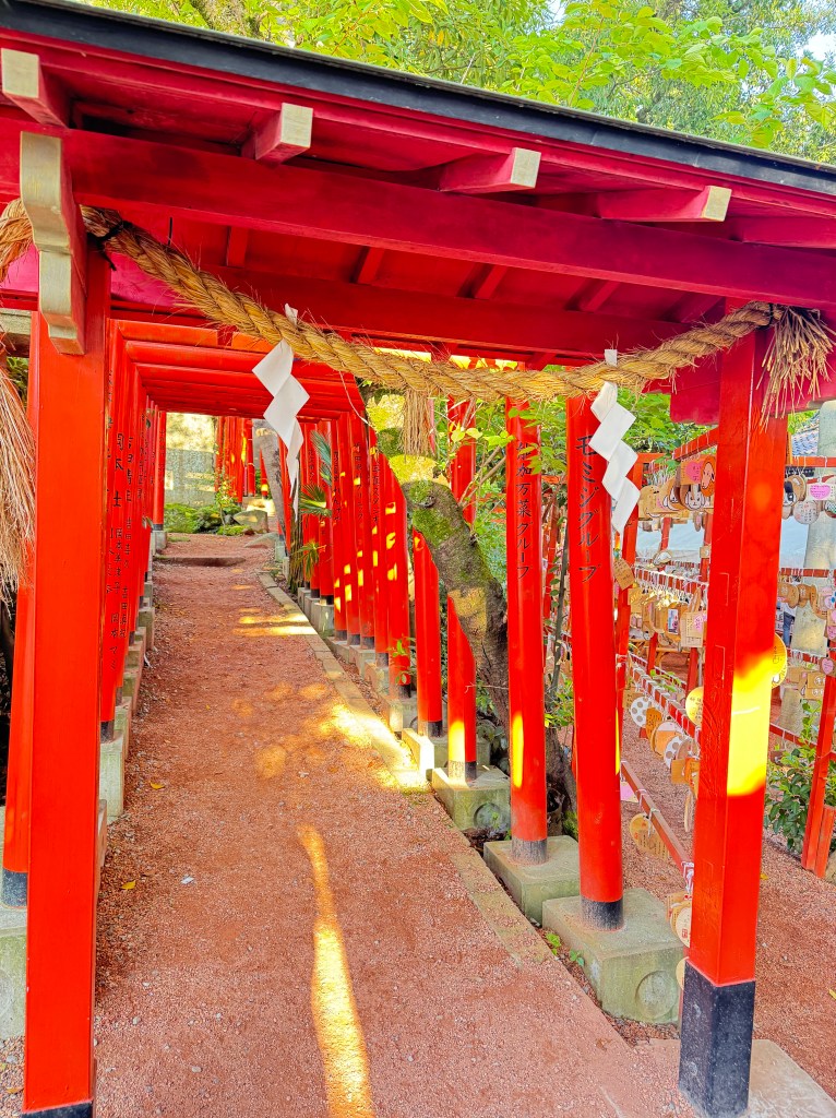 As I left the Park area, I followed a path where the cars were going down a beautiful deep embankment. It was covered by trees. Then I saw a few of the Vermillion Tori. There must’ve been a shrine next to it. So I went and I visited the Ishiura Shrine.