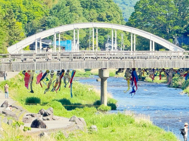 I was planning to walk back the way I came. Then, I intended to fire up maps to see what was around me, however, I was so distracted. I saw beautiful huge Koi fish on the bridge of the Asano River. They were flying under the bridge for boys’ day. I think it’s called children’s day now