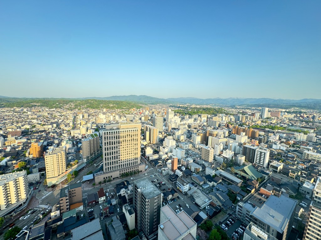 I woke up this morning to beautiful view outside my window of Kanazawa Train station and the city stretching out to the sea